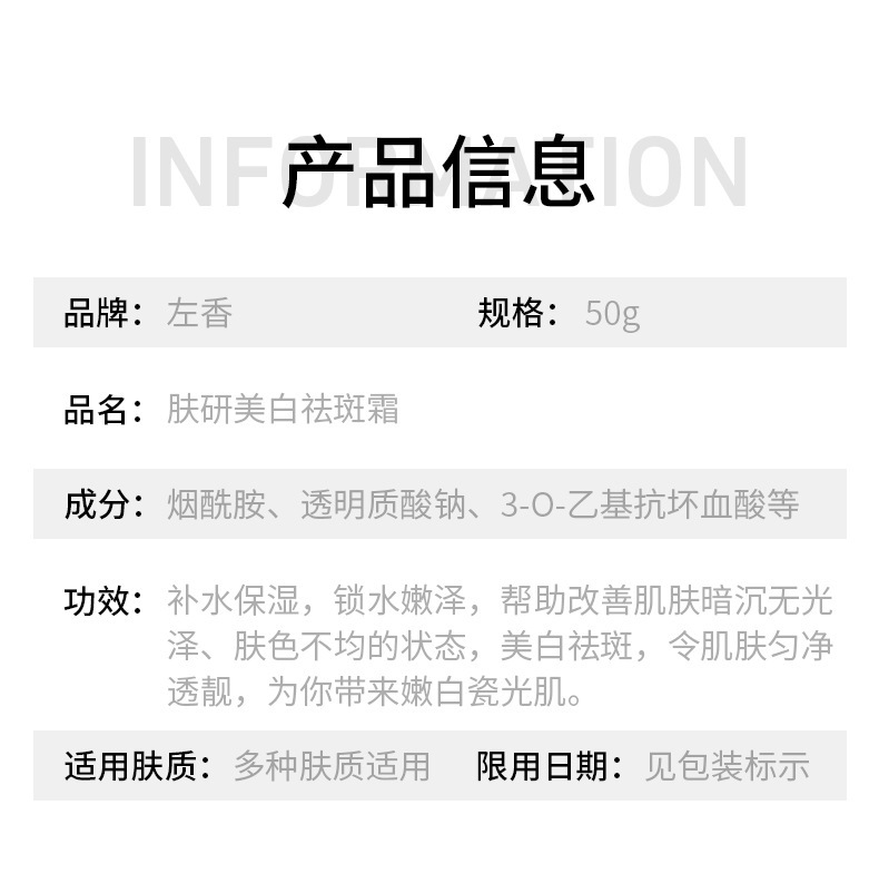 - Product specifications: Whitening and anti-freckle cream-50g (Zuoxiang)