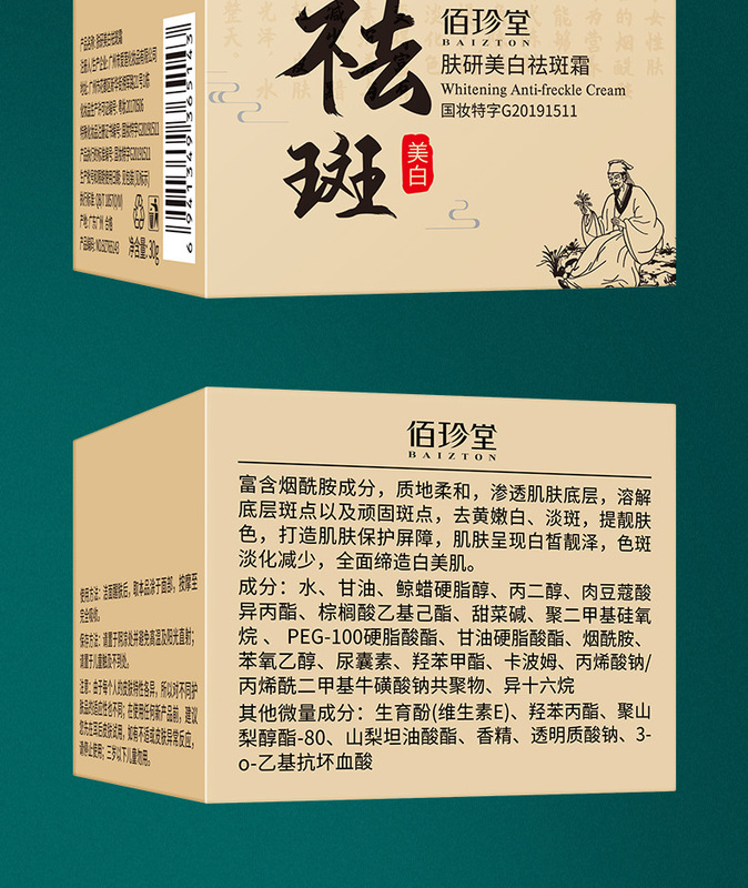 - Product name: Baizhentang whitening and anti-freckle cream