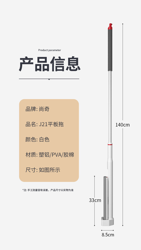 - Mop rod load-bearing capacity: more than 10kg