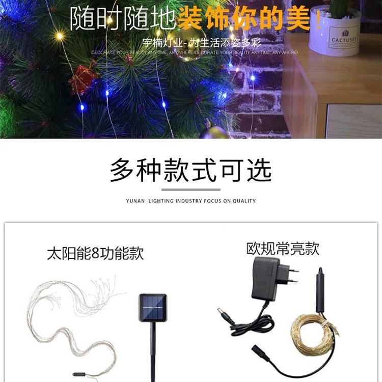 - Power: European standard 5 pcs 100 lights (always on)