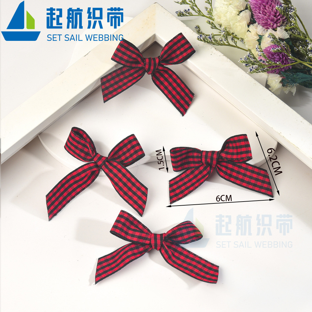 - 規格型號:1.5帶寬黑紅格蝴蝶結一個價