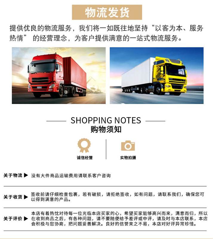 Delivery time: For products in stock, they will be shipped within 3 working days (excluding holidays) after you place your order and make payment. You will receive our notification after shipment.