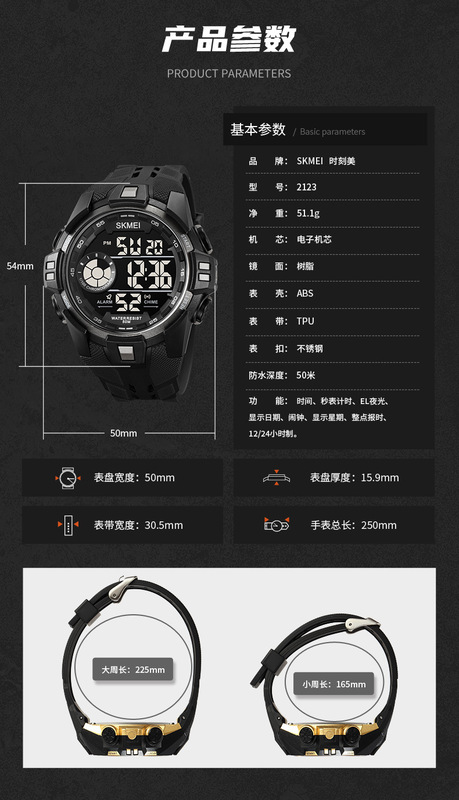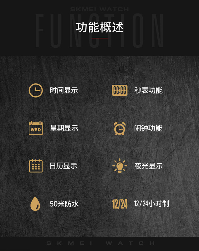 - 特殊功能::時間、秒表計時、EL夜光.顯示日期、鬧鐘、顯示星期、整點報時、12/24小時制