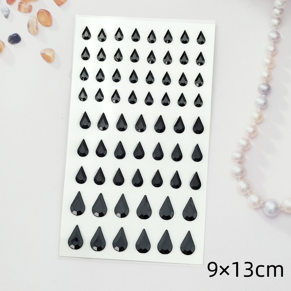 - 規格:黑色大小水滴鑽貼(背膠)