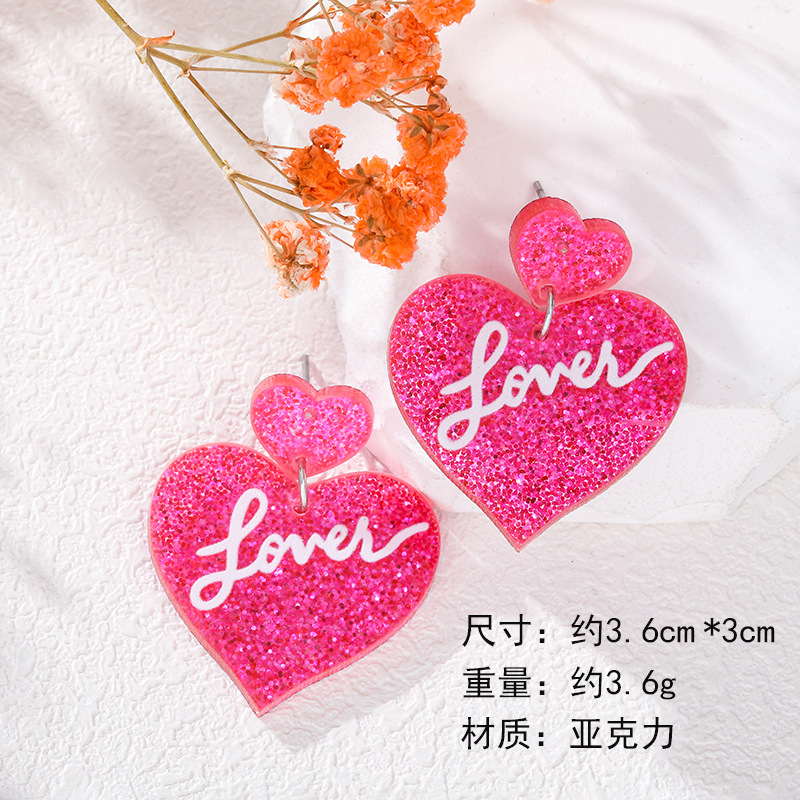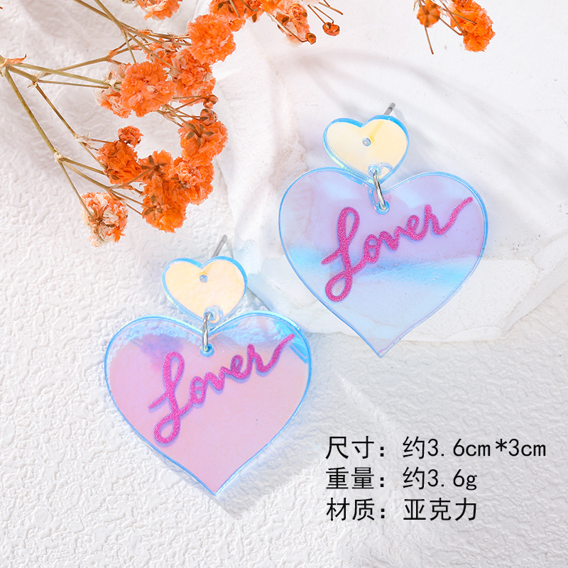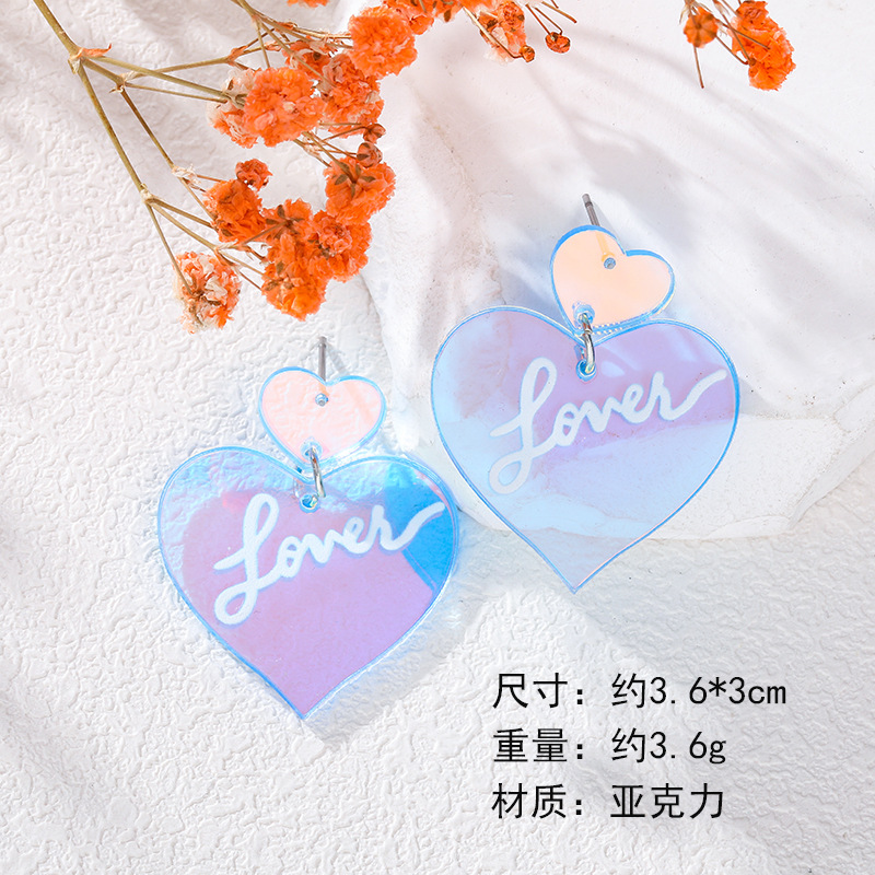 - 屬性3:甜美愛心love透明亞克力耳環
