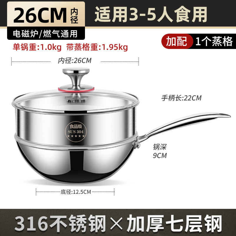 - 規格:26cm帶蓋+蒸格【316加厚無塗層】
