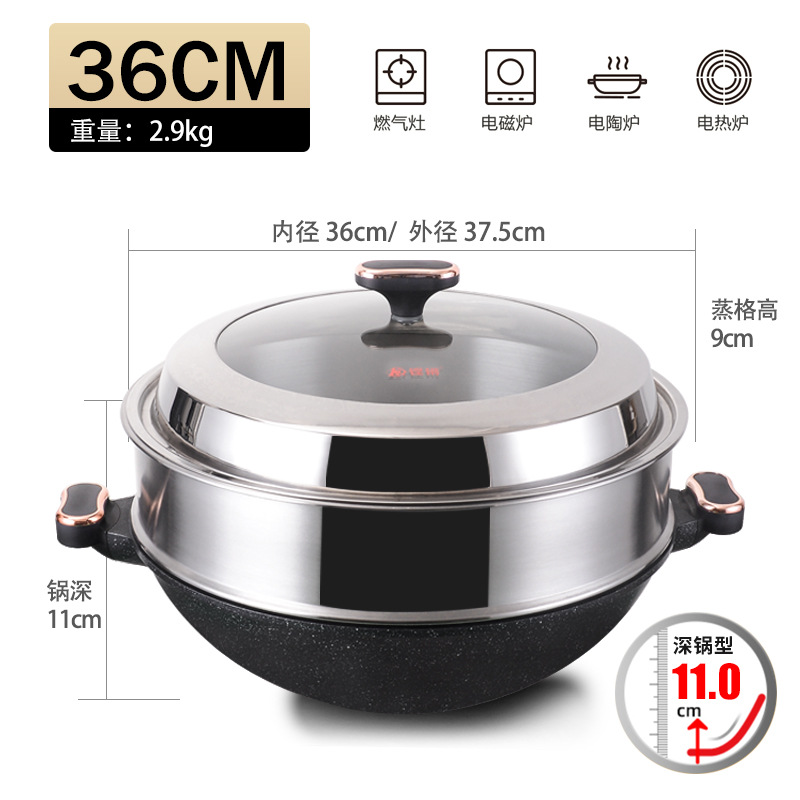 - 規格:36cm帶蒸格【少油煙麥飯石不粘鍋】