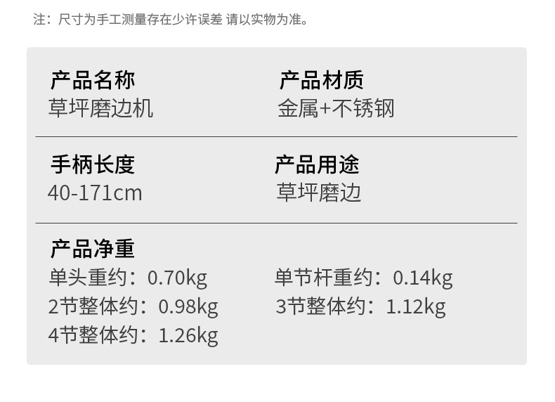 - Specifications: 4 sections 1.6m - lawn edger