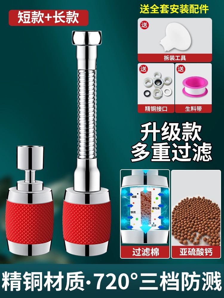 - Specification: Red 【Short + Long 2-pack】Filtering Purified Water - Metal Splash Head