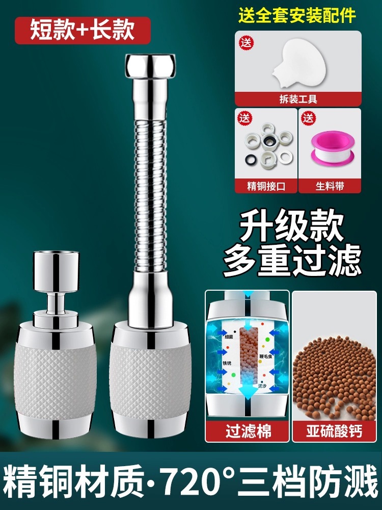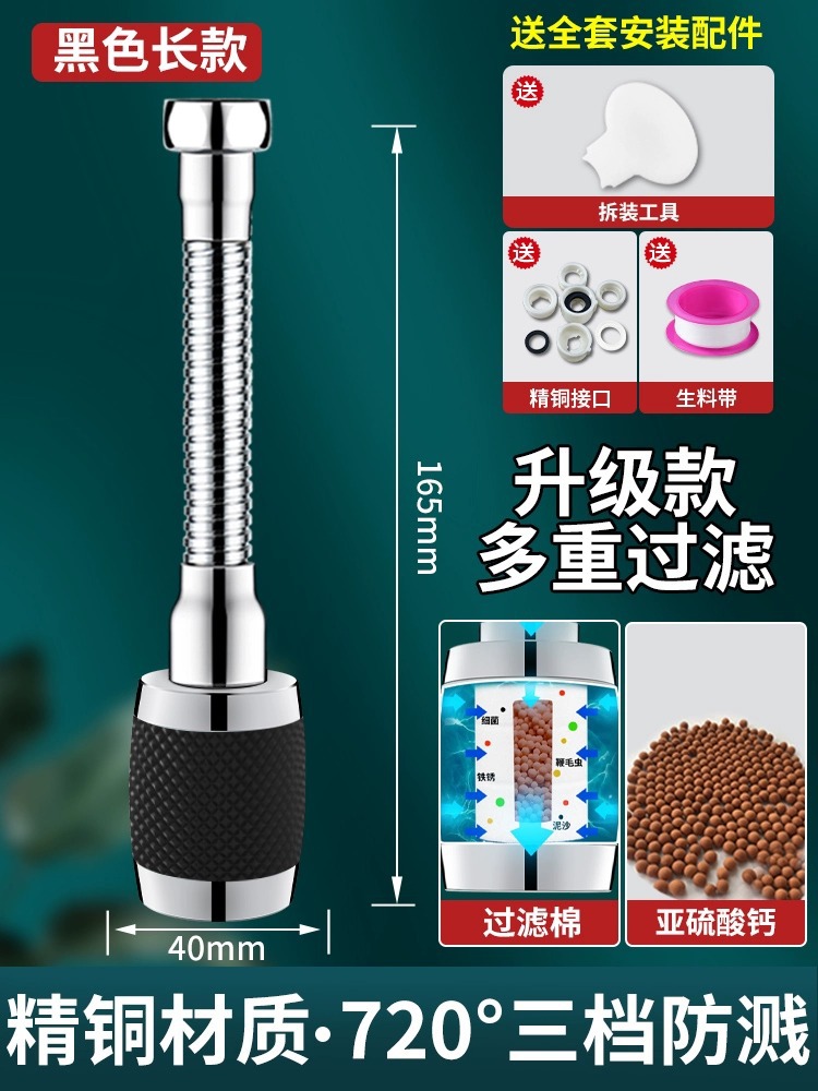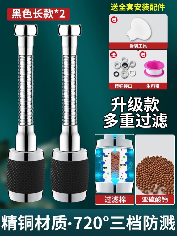 - Specification: Black 【Short + Long 2-pack】Filtering Purified Water - Metal Splash Head