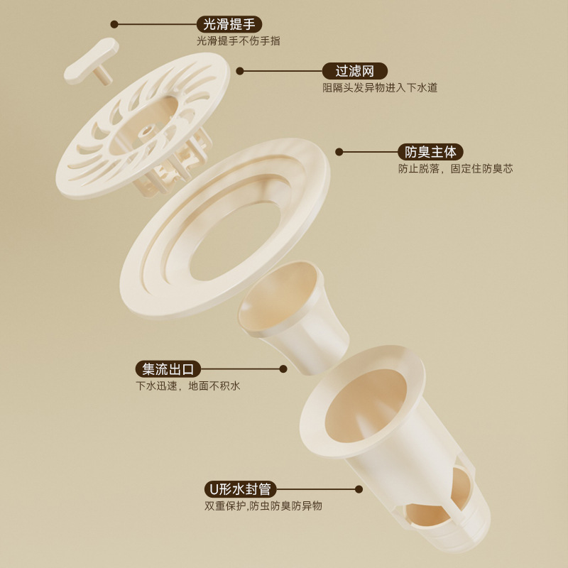 - 規格:第六代防臭地漏芯米黃色1個裝