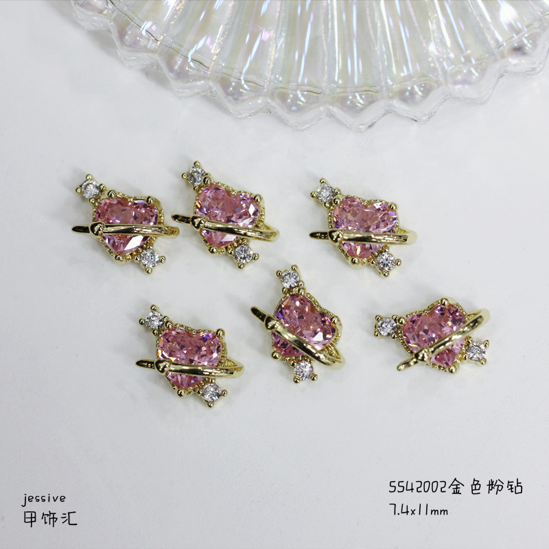 - 規格:5542003金色愛心粉鑽7.4x11mm