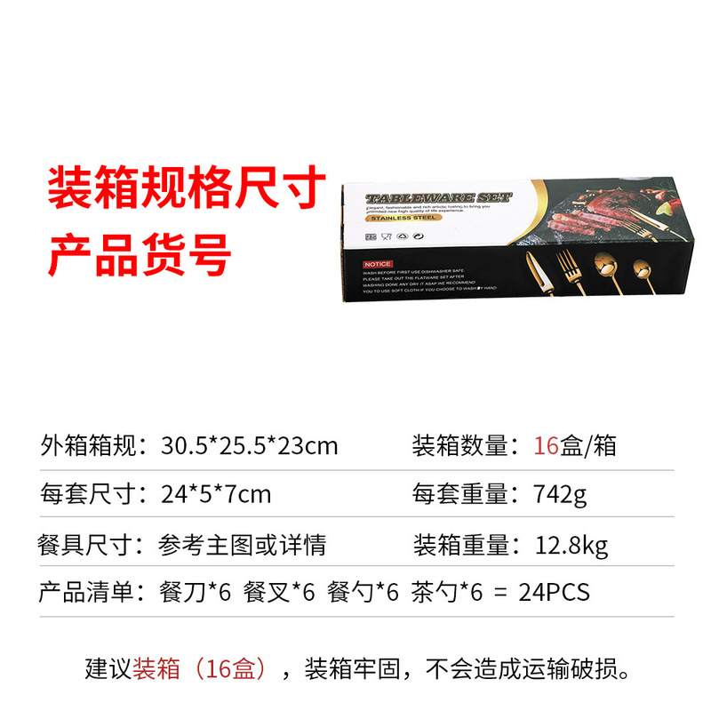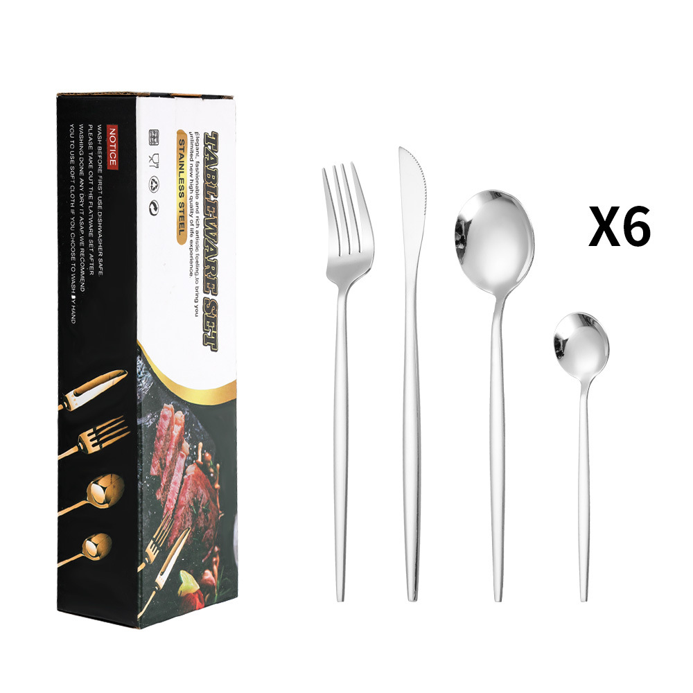 - Set list: Knife*6, Spoon*6, Fork*6, Tea spoon*6