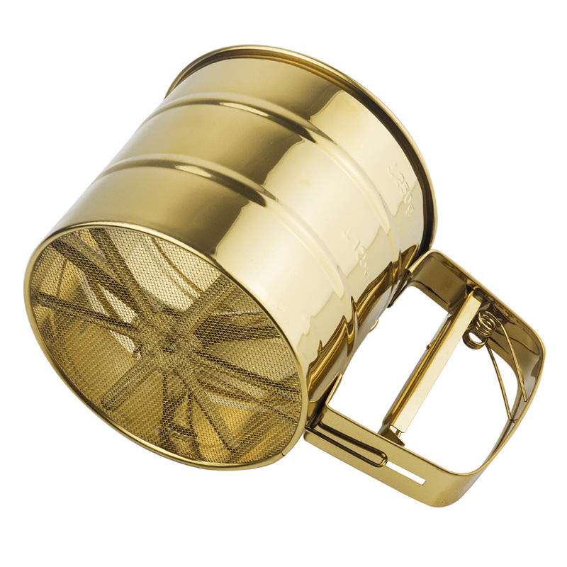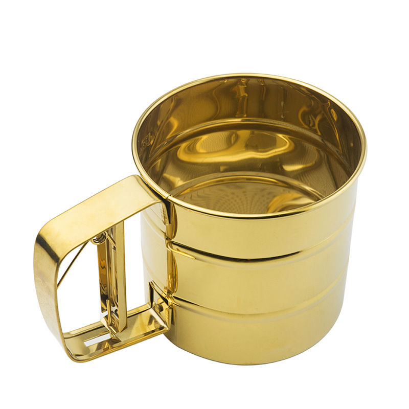 - Specifications: Light luxury gold semi-automatic flour sifting cup in black gift box