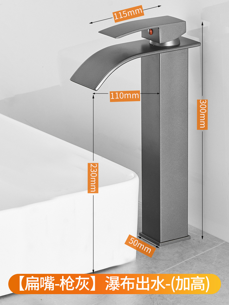 - Specifications: Heightened gun ash waterfall faucet