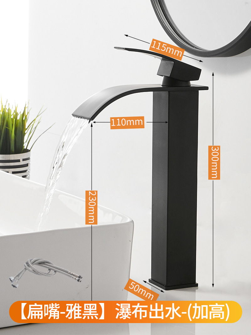 - Specifications: Heightened black waterfall faucet + water inlet pipe