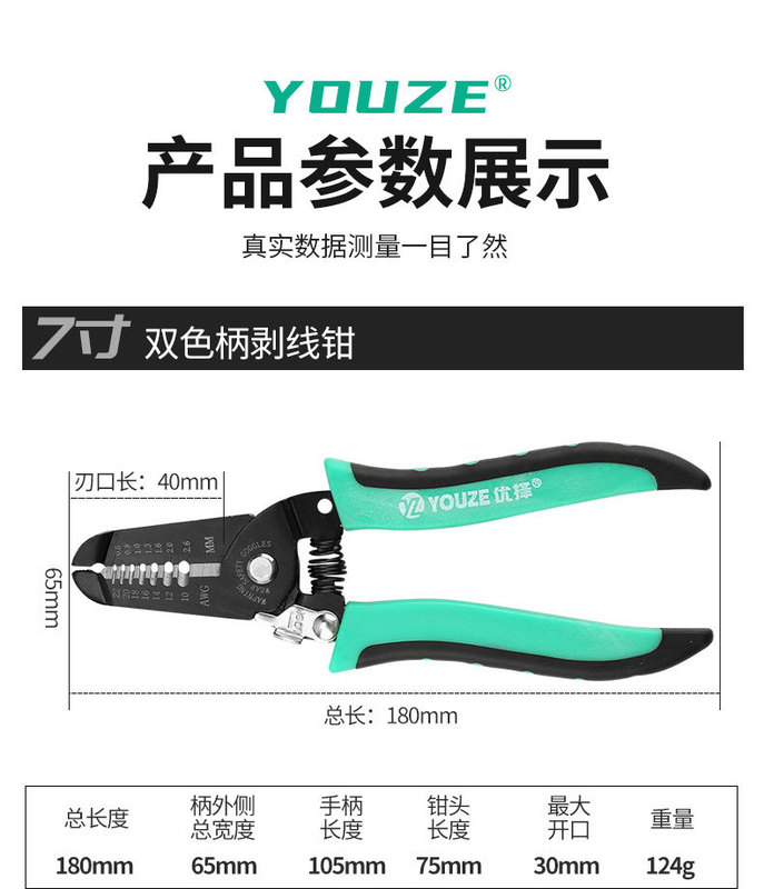 - Specifications and models: 45 steel two-color handle wire stripping pliers (box of 20 pieces/piece of 120 pieces)