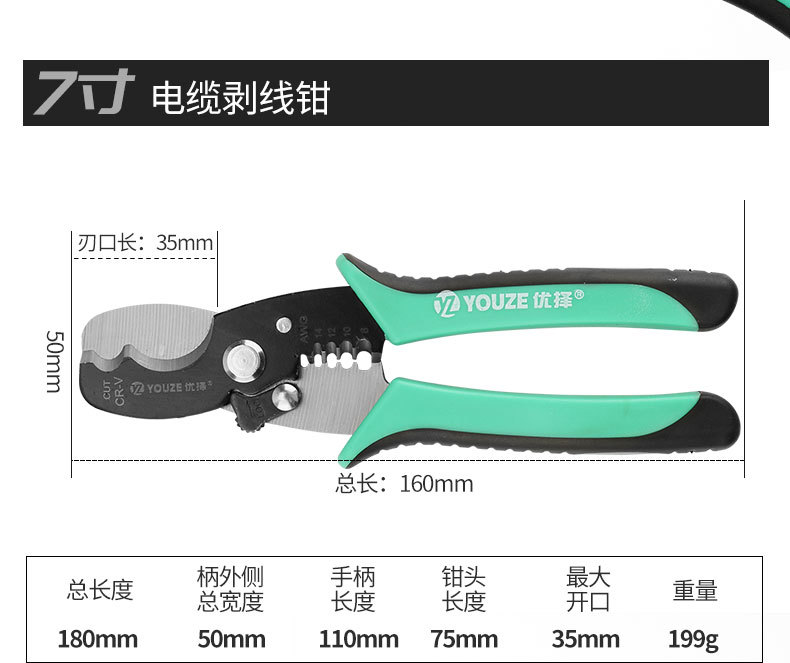 - Specifications and models: 45 steel double-color handle cable stripping pliers (box of 16 pieces/piece of 96 pieces)