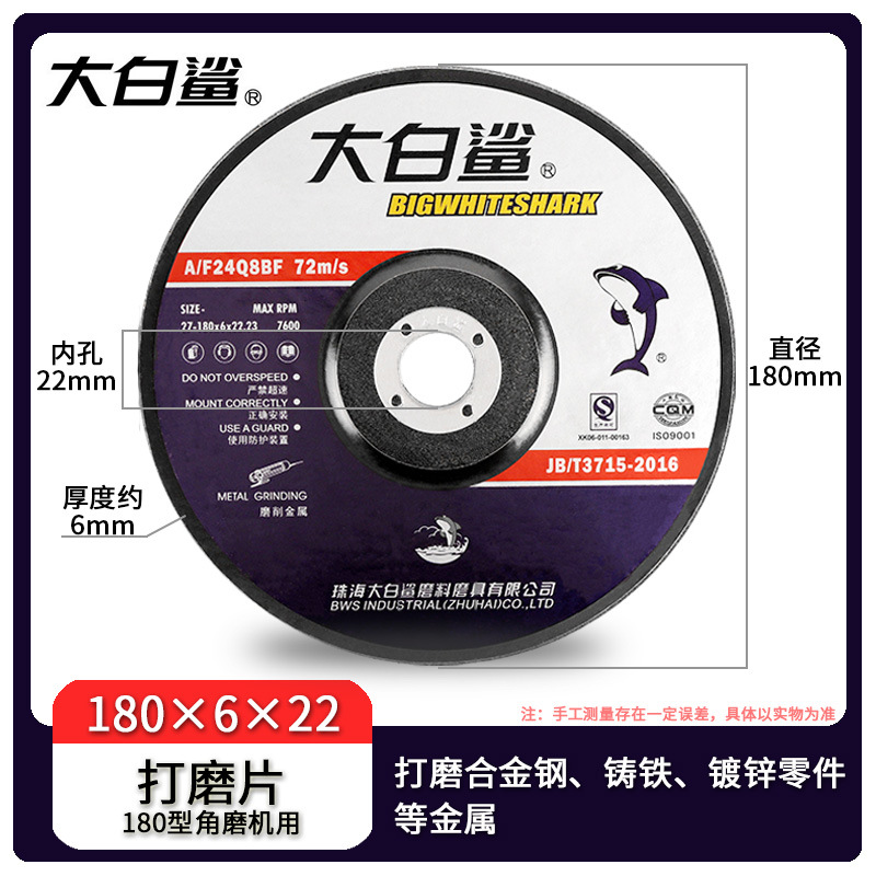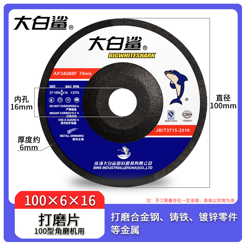 - 規格:大白鯊打磨片100*6*16mm(25/盒200/箱)