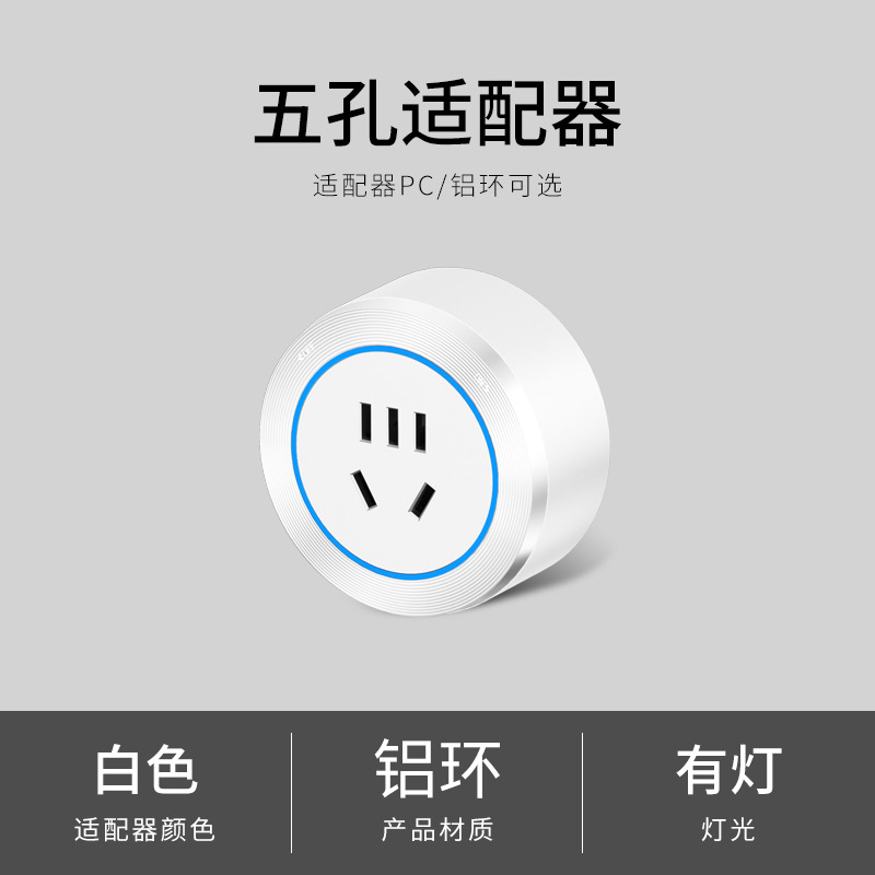 - Model: white blue light five-hole adapter