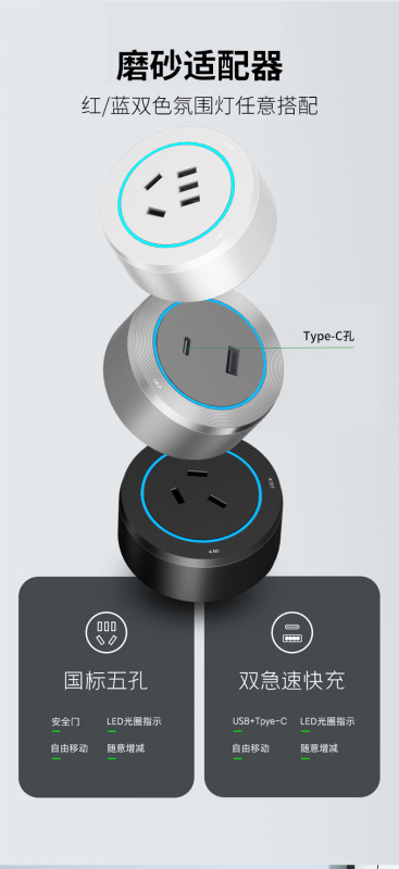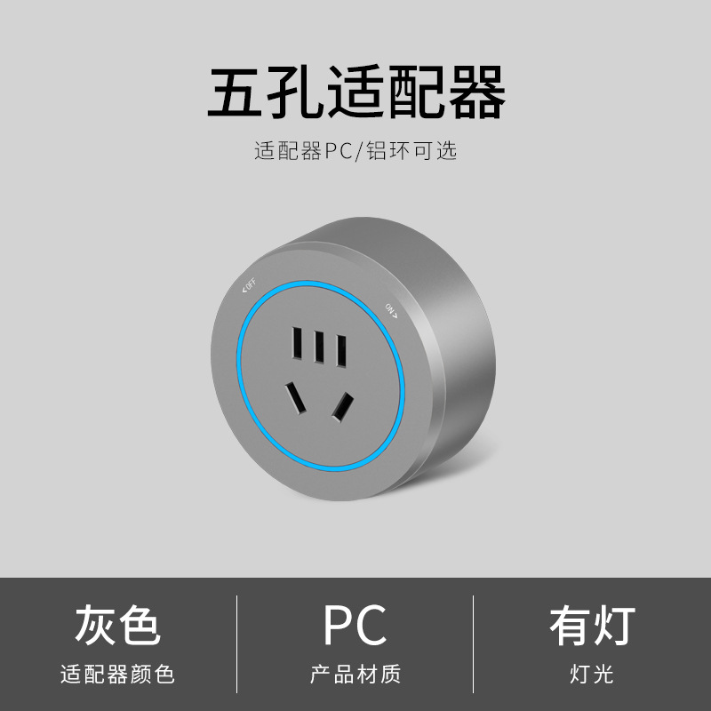 - Model: Gray blue light five-hole adapter