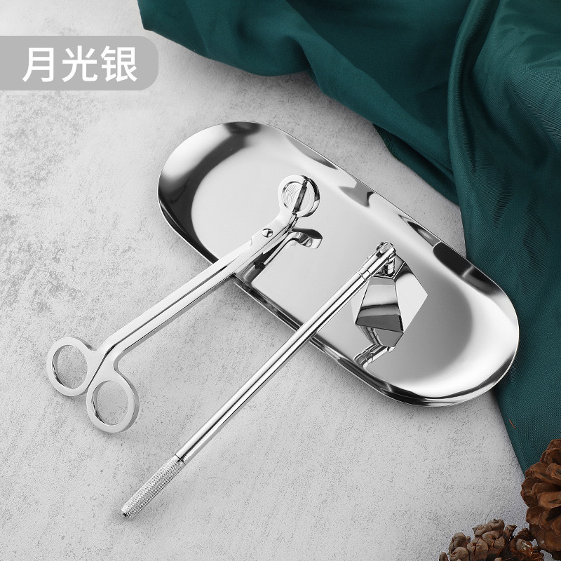 - Specification: Silver 3-piece set (color box + scissors + 2-in-1 hook cover + oval tray)