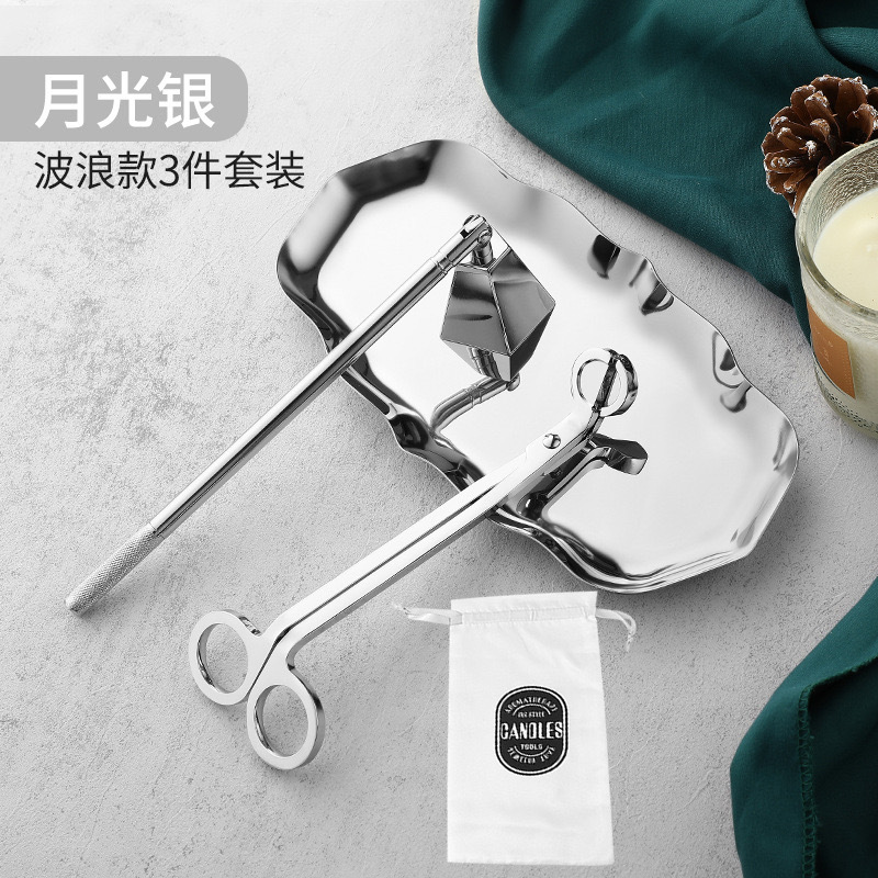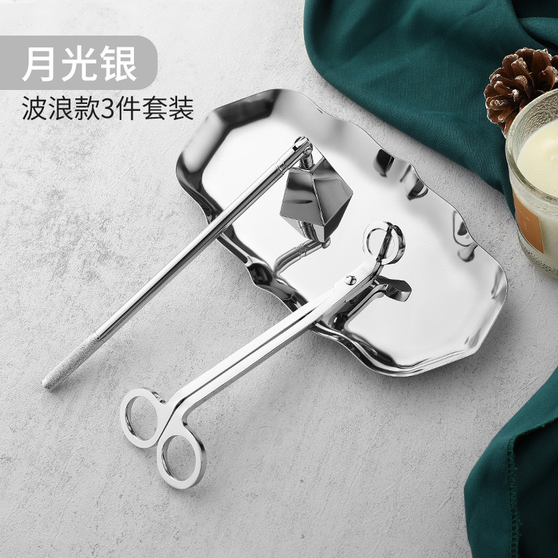 - Specification: Silver 3-piece set (color box + scissors + 2-in-1 hook cover + wave-shaped tray)
