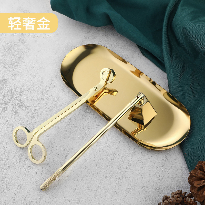 - Specification: Gold 3-piece set (color box + scissors + 2-in-1 hook cover + oval tray)