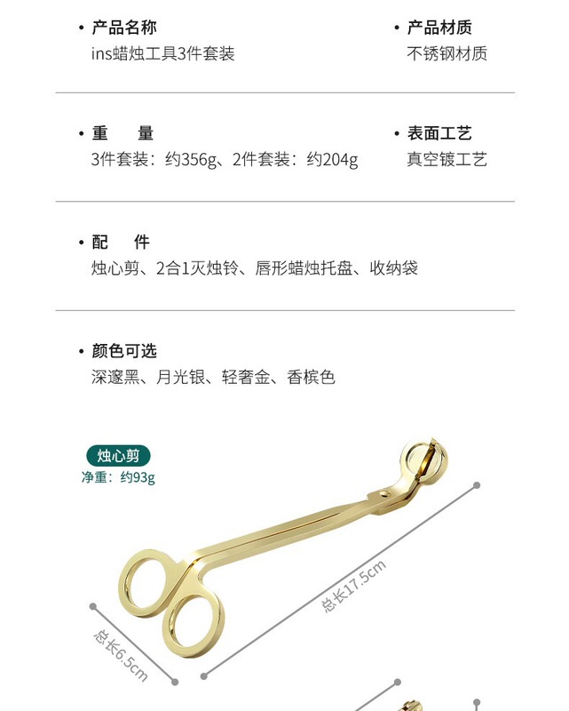 - Specification: Gold candle scissors