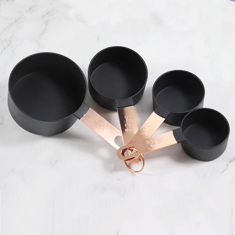- Specification: Copper-plated handle black measuring cups and spoons (color box)