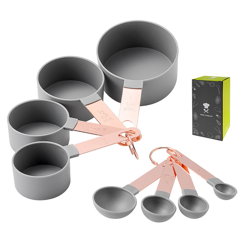- Specification: Copper-plated handle gray measuring cups and spoons (color box)