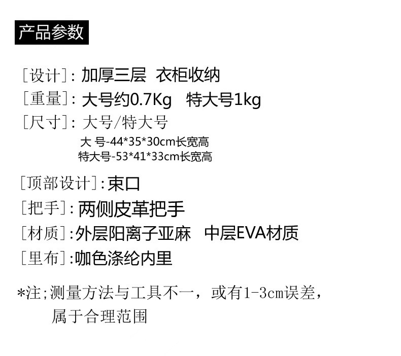 - 材質:外皮布藝+中間2mmEVA層+內里滌綸布
