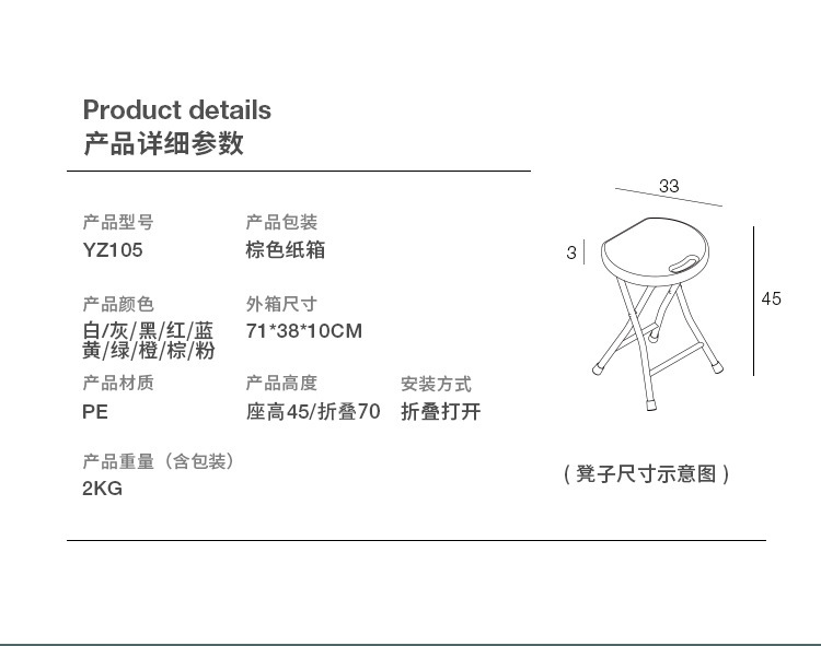 - Specifications: folding stool