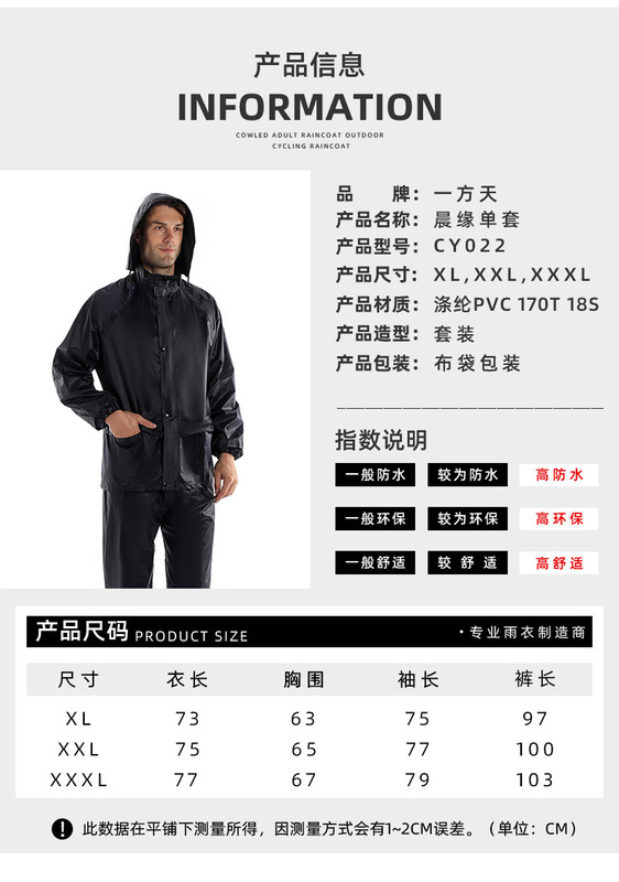 - Style: One-piece raincoat