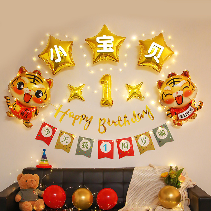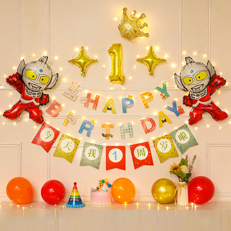 - Specification: Style 15 + Birthday Pull-up Flag + Small Gold Number 1