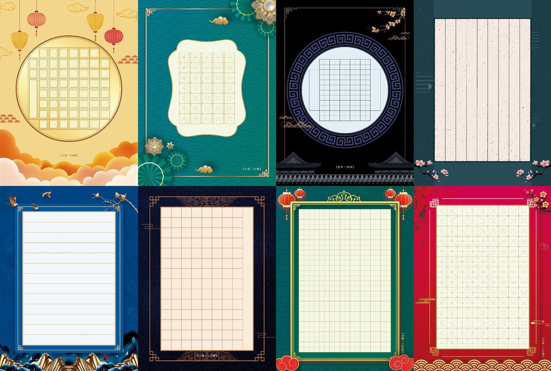 - Specification: Danqing Style (Mixed Grid) 24 Sheets