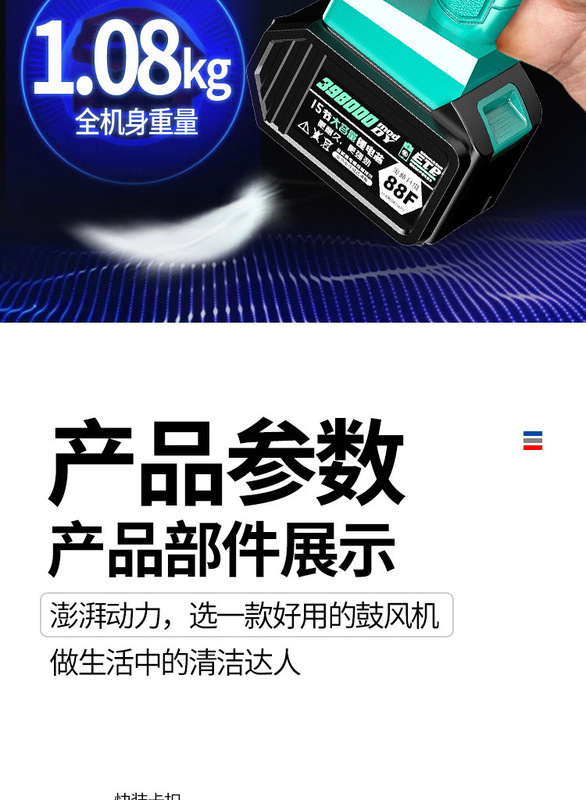 - Model: flagship super long model (blow, suction and spray) 398000 two batteries and one charge + three-piece set