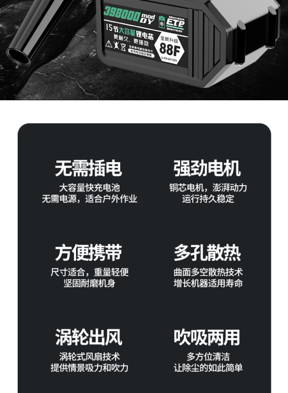 - Model: flagship super long model (blow, suction and spray) 398000, one battery, one charge + three-piece set