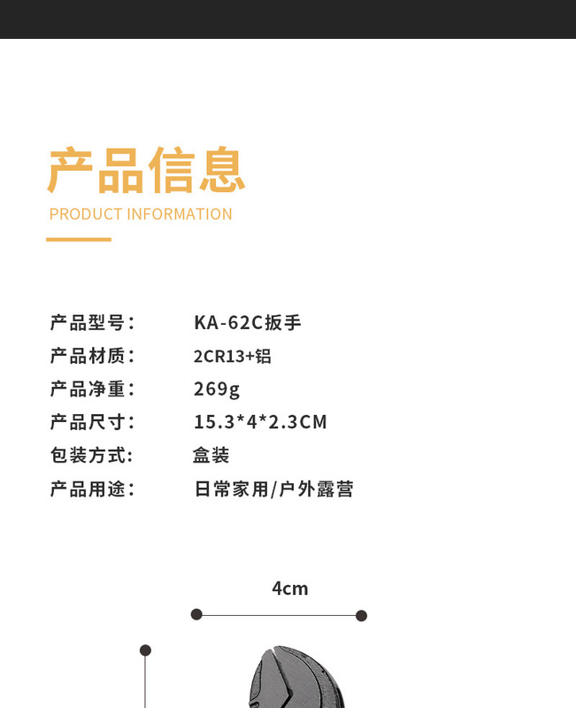- Specifications and models: KA-62C wrench, gray and black, e-commerce packaging