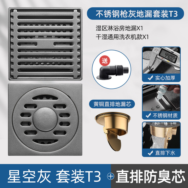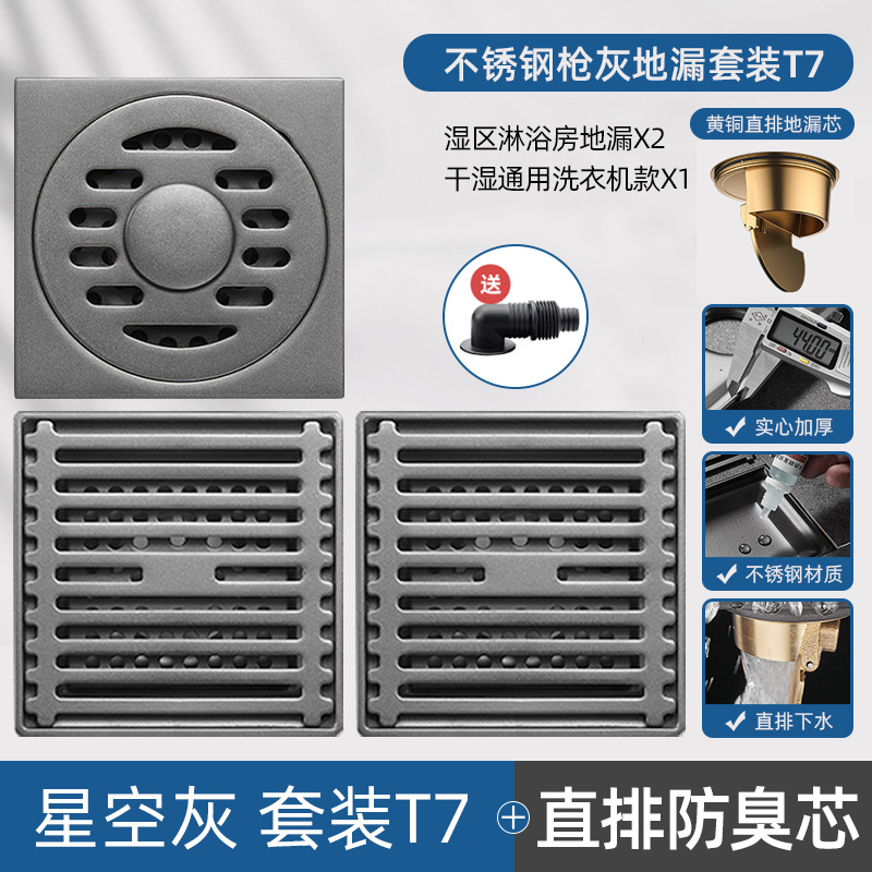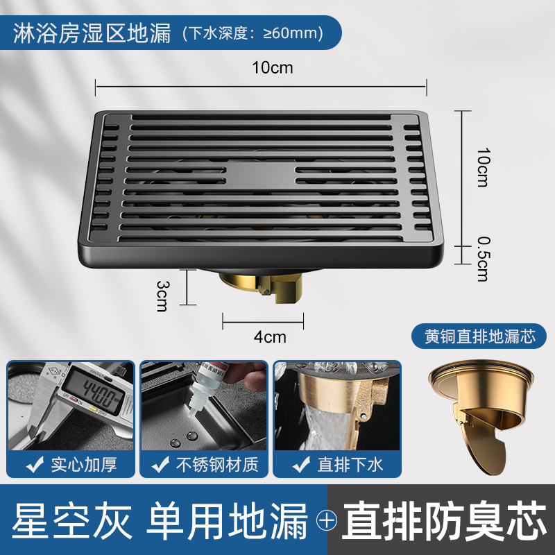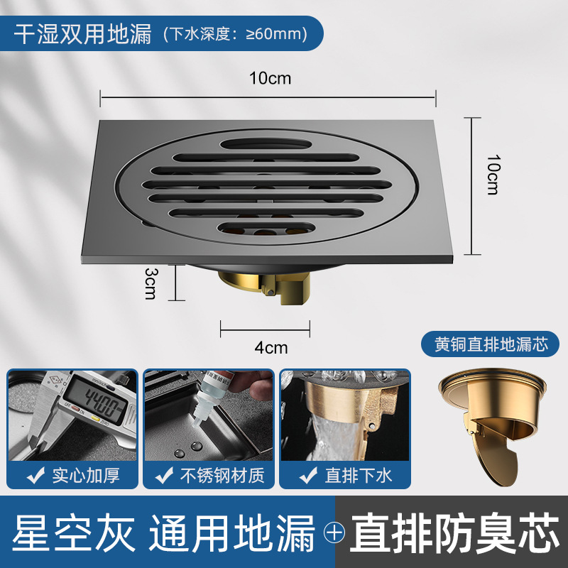 - Specifications: [Starry Sky Gray] Line-Universal Floor Drain [Universal for Dry and Wet] [Thickened] [Full Copper Drain Core]