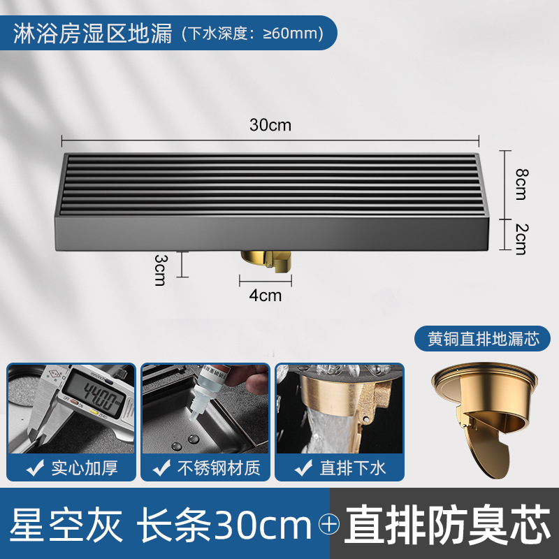 - Specifications: [Starry Sky Gray] Long Shower Floor Drain 30CM [Thickened] [Full Copper Drain Core]