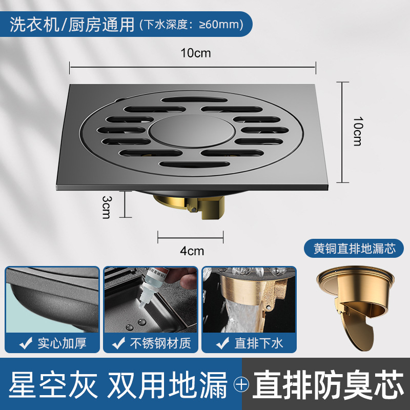 - Specifications: [Starry Sky Gray] Kitchen and Bathroom/Washing Machine - Dual-Purpose Floor Drain [Thickened] [Full Copper Drain Core]