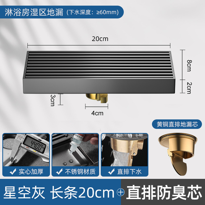 - Specifications: [Starry Sky Gray] Long Shower Floor Drain 20CM [Thickened]