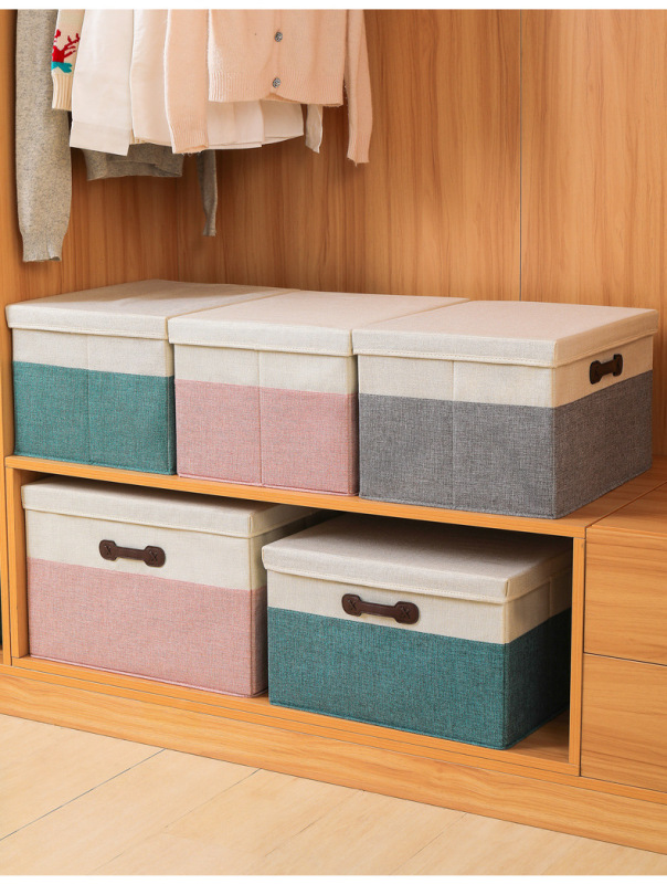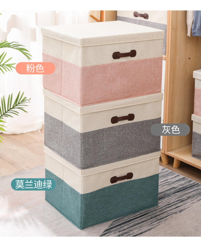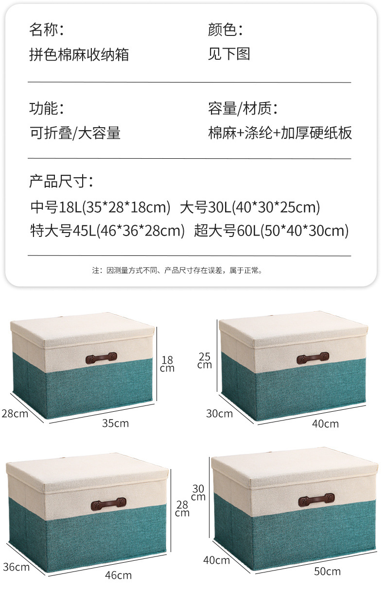 - 型號:拼色棉麻收納箱