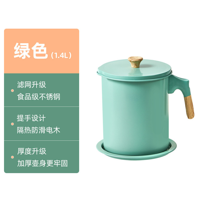 - Capacity: 1.4L wood grain oil pot dark green