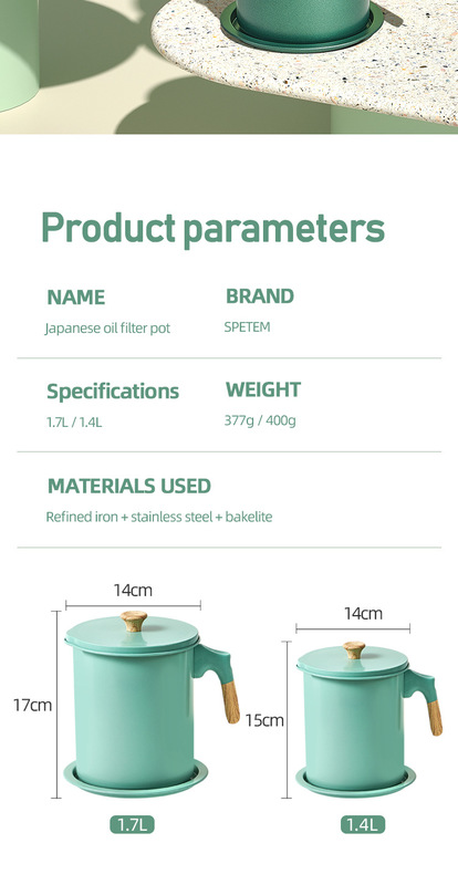 - Capacity: 1.4L Mocha green oil filter pot