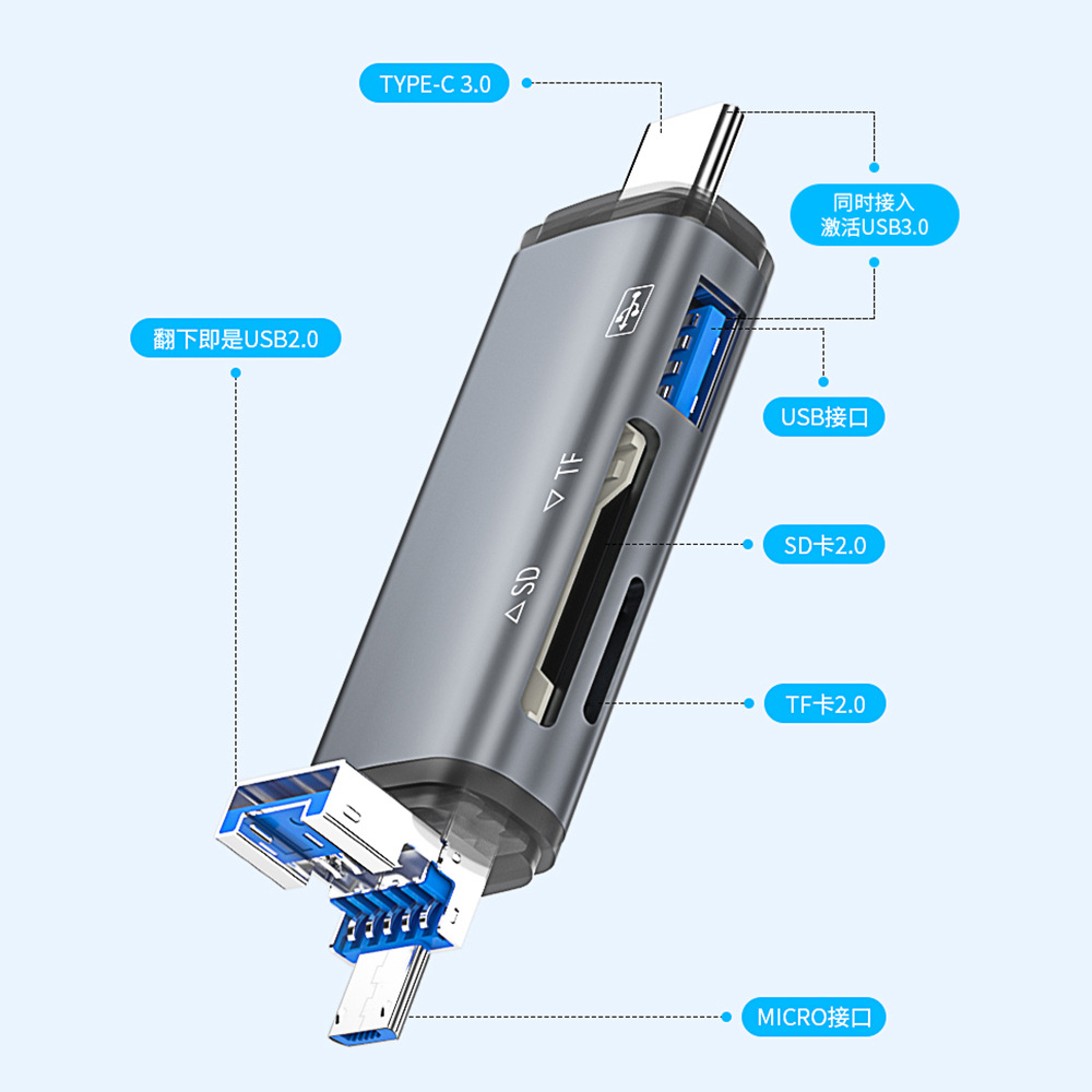 - Number of interfaces: [Card reader] USB*1+type-c*1+micro*1+sd+tf