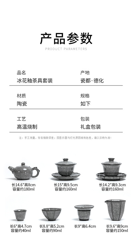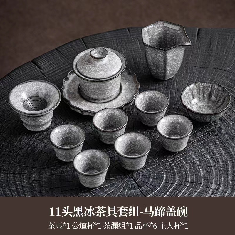 - 規格:黑冰青瓷圓身蓋碗10頭套裝