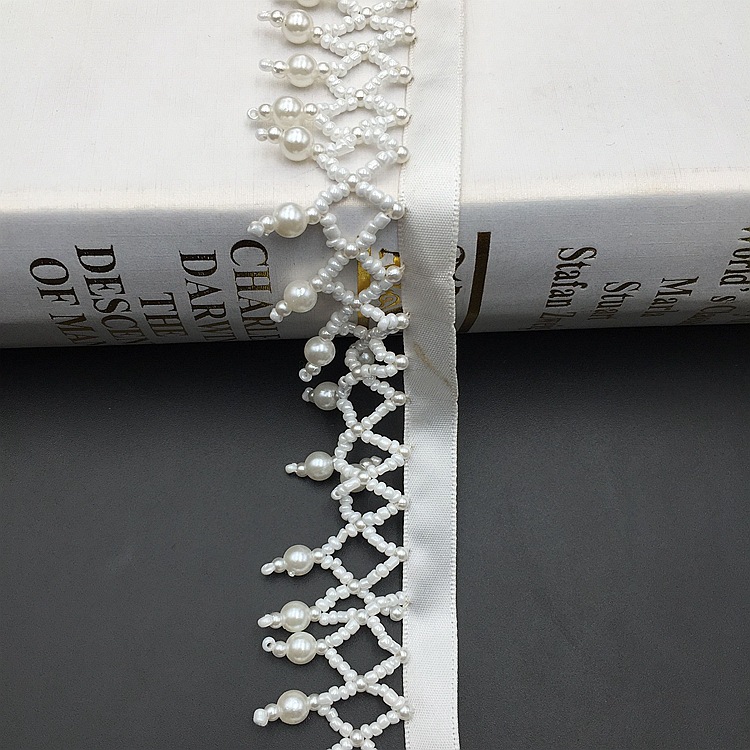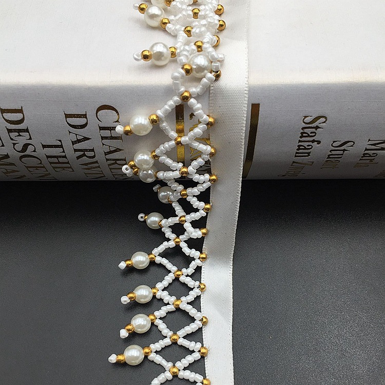 - 材質:玻璃珠仿珍珠織帶