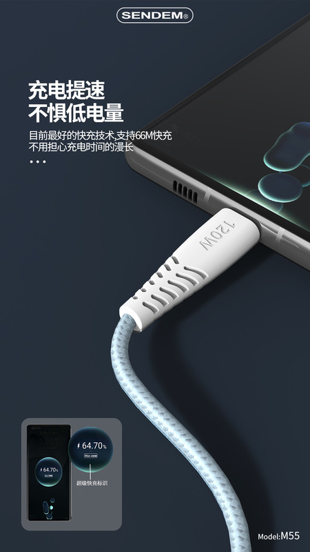 - 型號:M55-安卓-抗折彎120W編織數據線